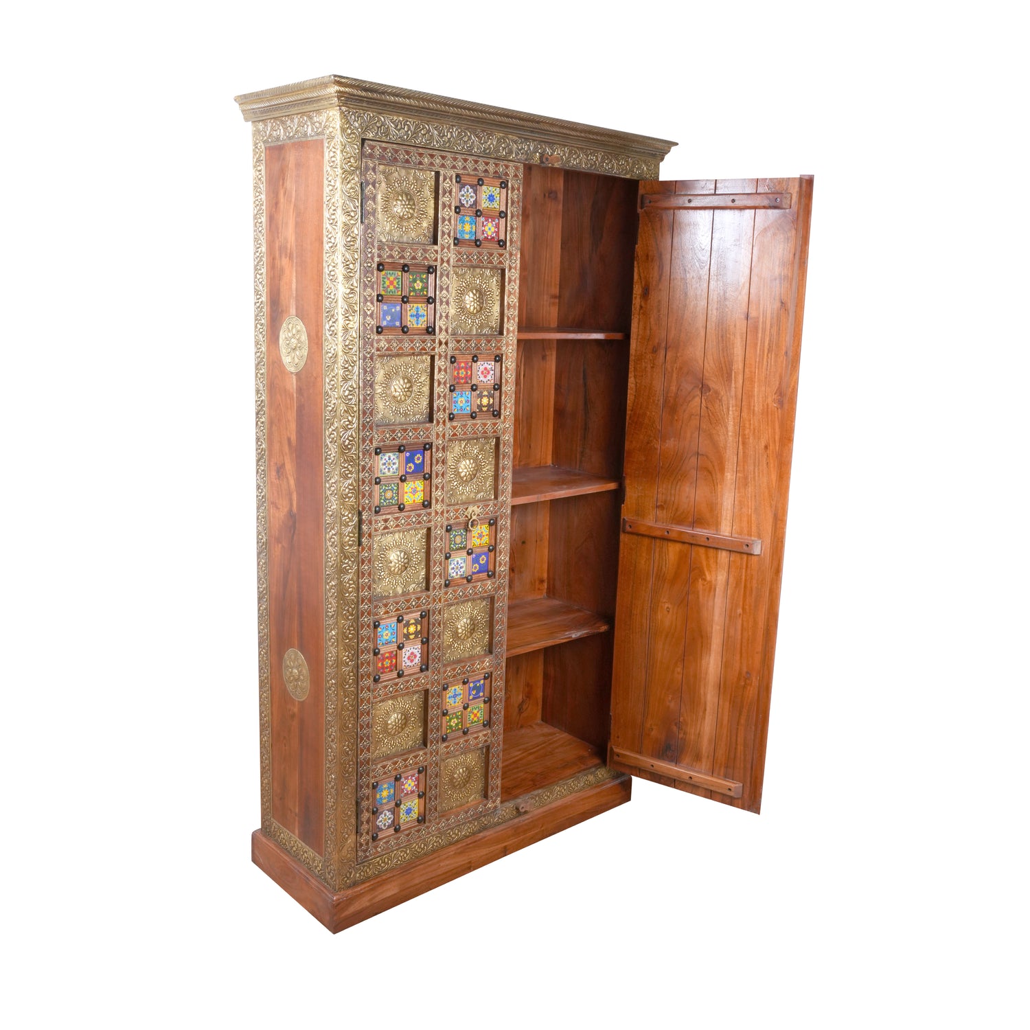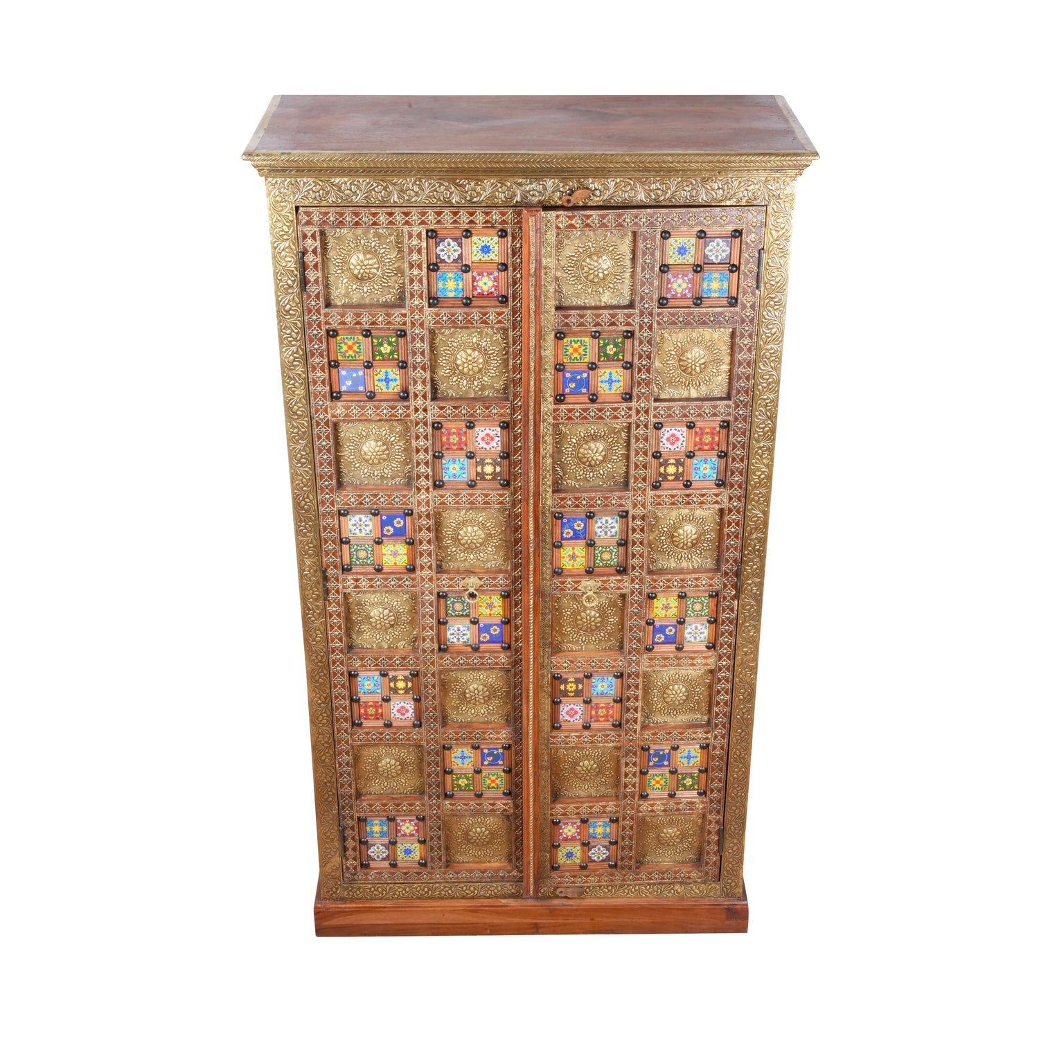 Handcrafted Brass & Tile Inlay Almirah | Ethnic Storage Cabinet Wardrobe