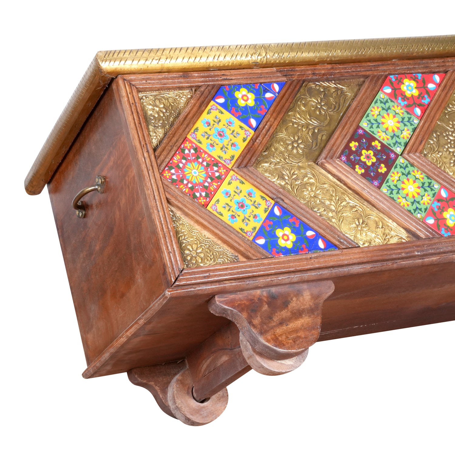 Handcrafted Tile & Embossed Brass Storage Trunk