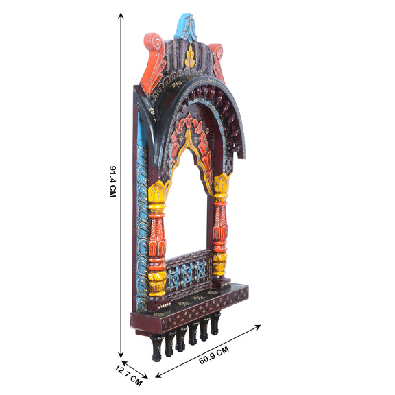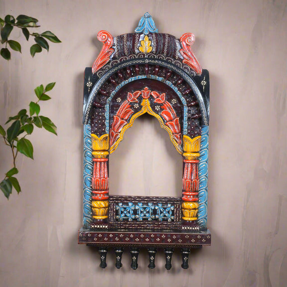 The Rajasthani Royal Window - Hand-Carved & Painted Wooden Jharokha Mandir