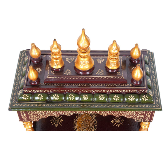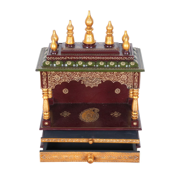 Functionality: The structure includes essential temple features: a main altar platform for placing deities, and a single drawer at the base for organized storage of prayer essentials (puja samagri), such as incense, prayer beads, or a cleaning brush. The compact 21-inch size makes it suitable for tabletop or wall-mounted placement in apartments or smaller spaces.
